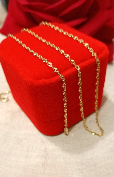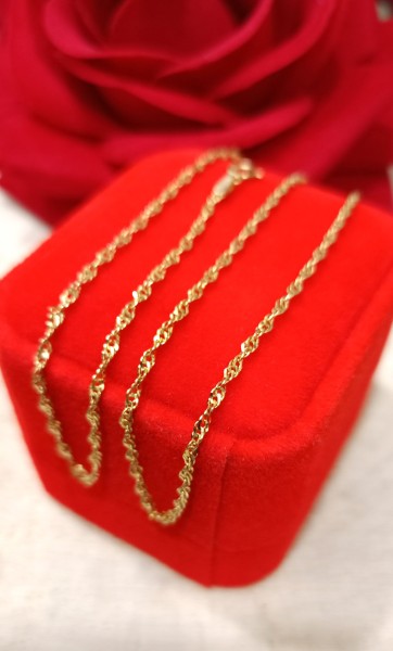Przedmiotem sprzedaży jest łańcuszek, wykonany z 14-karatowego (p.585),żółtego złota - splot Singapur.