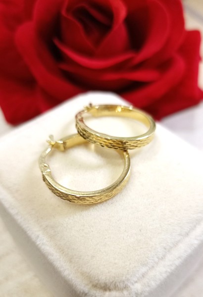 Przedmiotem sprzedaży są kolczyki koła, wykonane z 14-karatowego (p.585), żółtego złota.