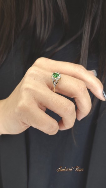 Przedmiotem sprzedaży jest pierścionek wykonany z 14-karatowego (p.585), żółtego złota.