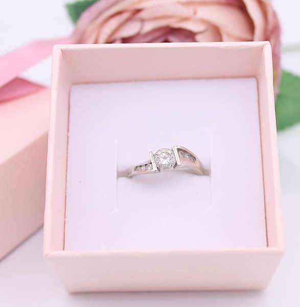Przedmiotem sprzedaży jest pierścionek,wykonany z 14-karatowego(p.585),białego złota z cyrkoniami.