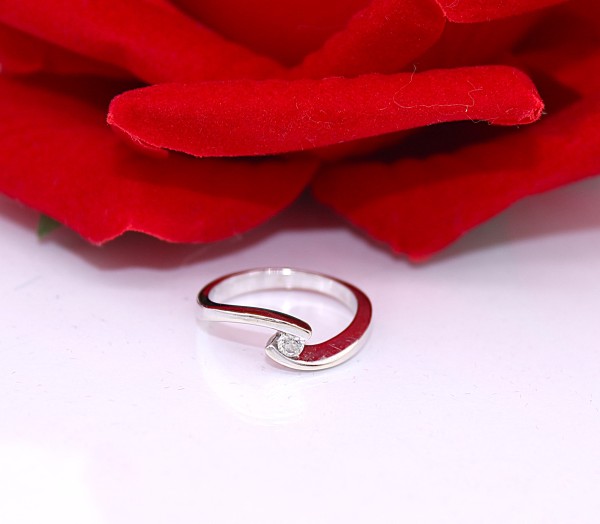 Przedmiotem sprzedaży jest pierścionek z diamentem, wykonany z 14-karatowego (p.585) białego złota.
