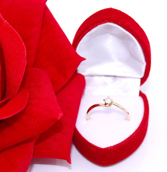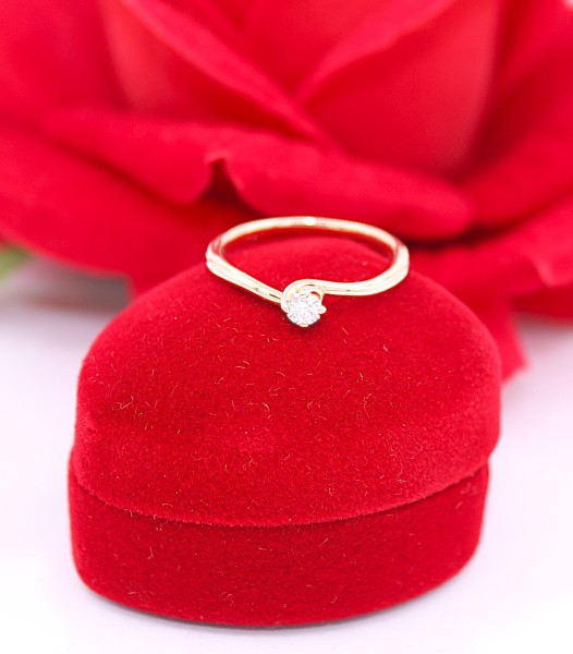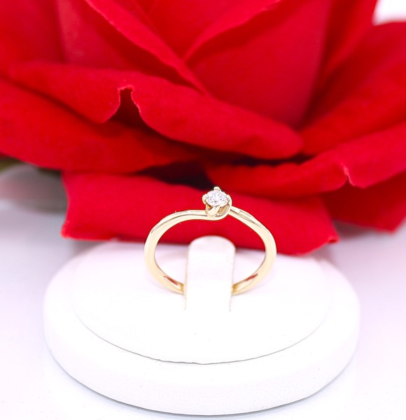 Przedmiotem sprzedaży jest pierścionek z brylantem,wykonany z 14-karatowego (p.585) żółtego złota.