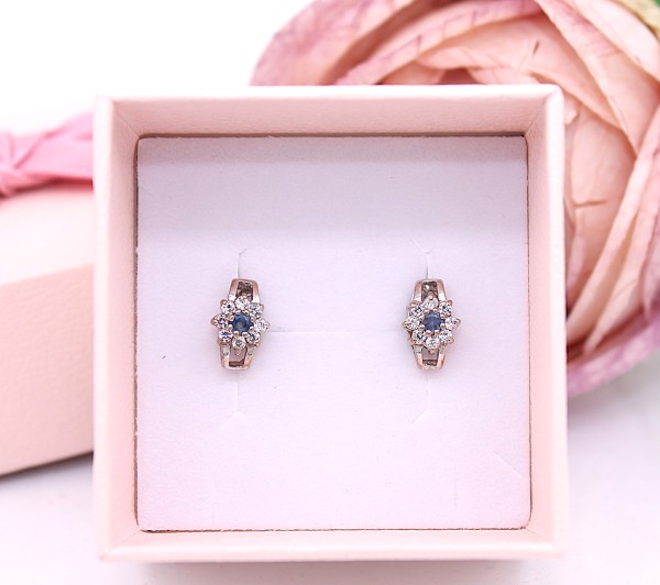 Złote kolczyki p.585/2,84g z niebieskim kamieniem i cyrkoniami ŁZ