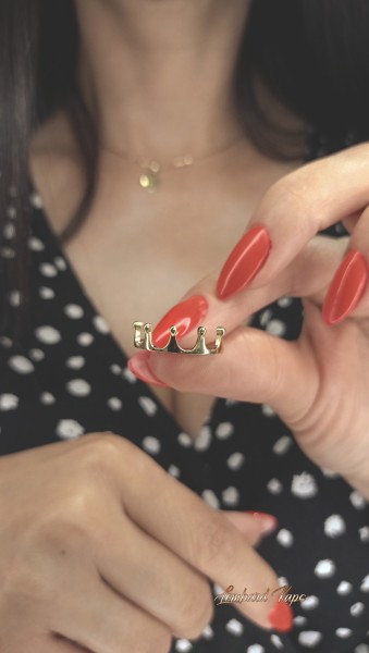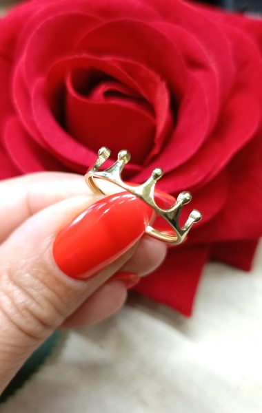Przedmiotem sprzedaży jest pierścionek korona wykonany z 14-karatowego (p.585), żółtego złota.
