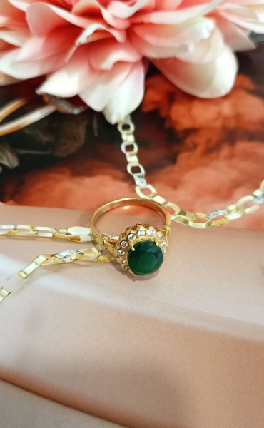 Przedmiotem sprzedaży jest pierścionek wykonany z 14-karatowego (p.585), żółtego złota.