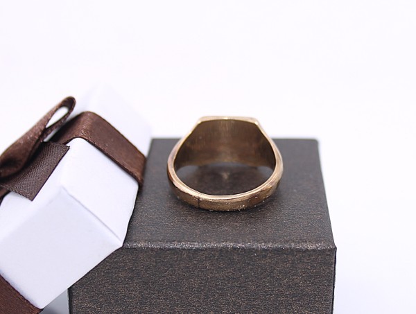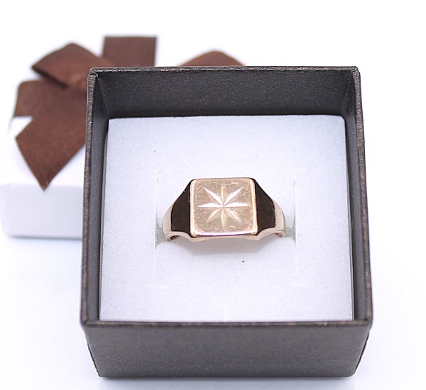 Przedmiotem sprzedaży jest sygnet wykonany z 9-karatowego(p.375),żółtego złota, ozdobiony na froncie wygrawerowaną gwiazdą.