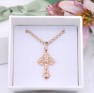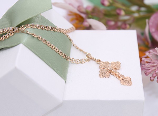 Przedmiotem sprzedaży jest łańcuszek,wykonany z 14-karatowego (p.583) różowego złota z zawieszką - Krzyżem.