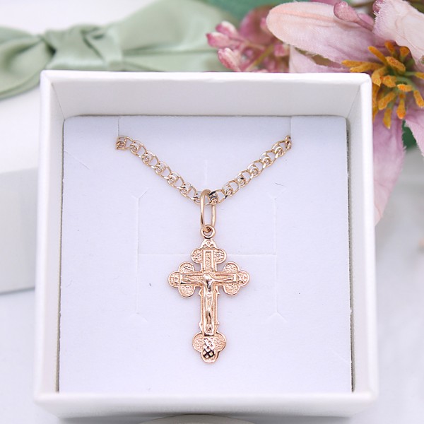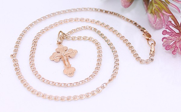 Złoty łańcuszek z krzyżem p.585/3,49g - różowe złoto ŁZ
