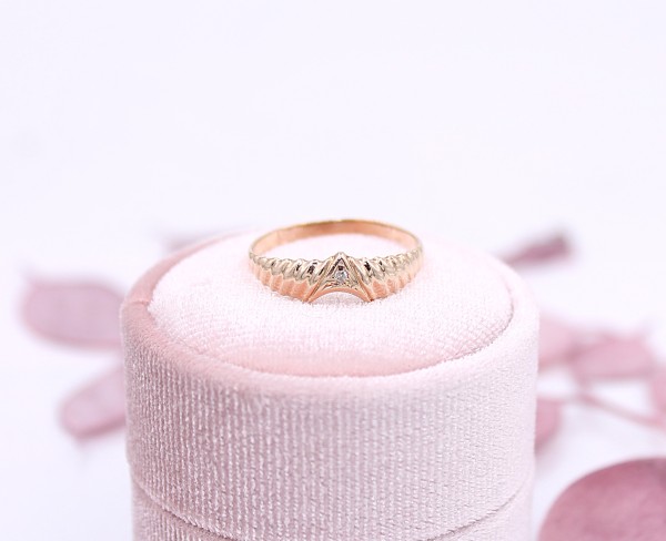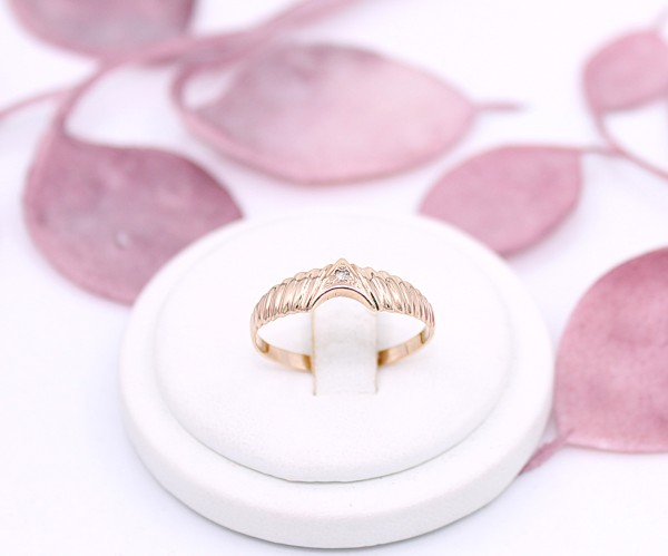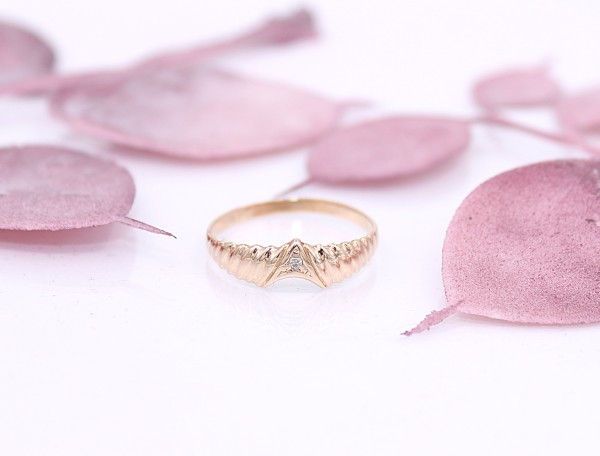 Przedmiotem sprzedaży jest pierścionek,wykonany z 14-karatowego(p.585),żółtego złota, ozdobiony na froncie drobną cyrkonią.