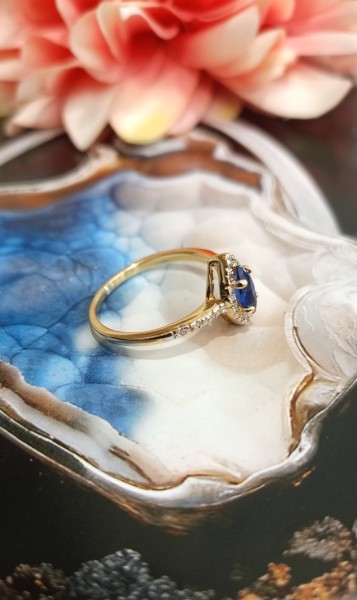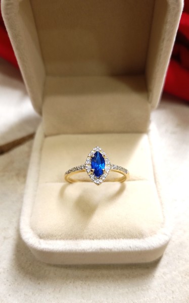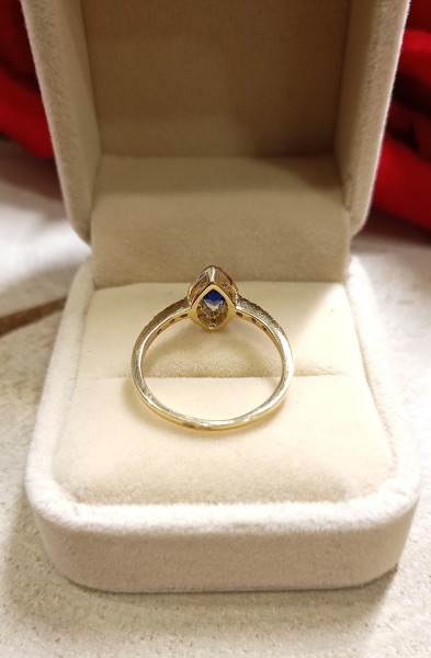 Przedmiotem sprzedaży jest pierścionek wykonany z 14-karatowego (p.585), żółtego złota.