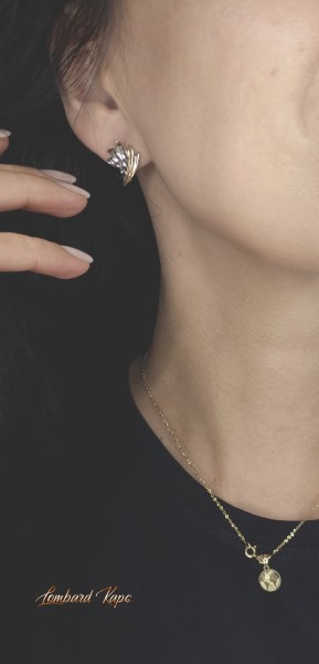 Przedmiotem sprzedaży są eleganckie kolczyki, wykonane z 14-karatowego (p.585), żółtego i białego złota.