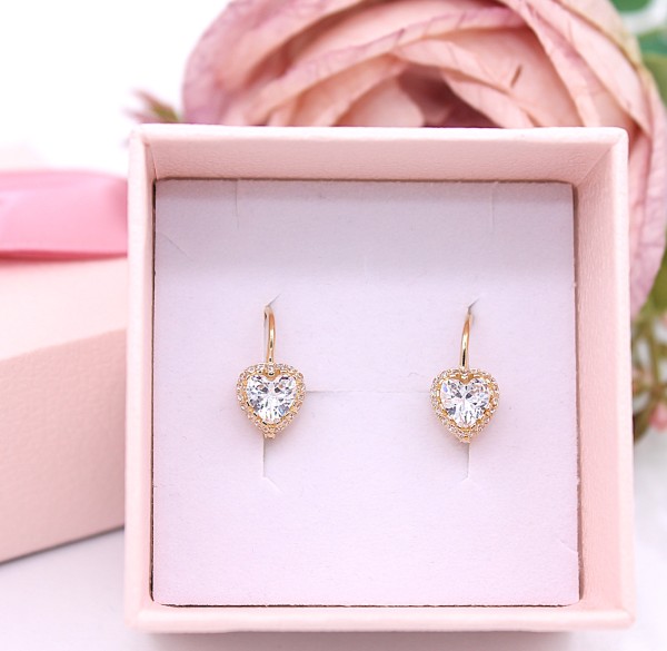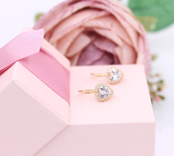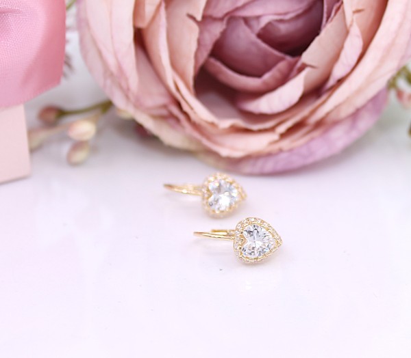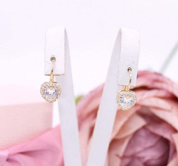 Przedmiotem sprzedaży są kolczyki, serduszka z cyrkoniami, wykonane z 14-karatowego,(p.585) żółtego złota.