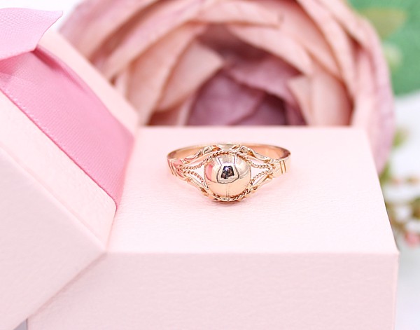 Przedmiotem sprzedaży jest pierścionek, wykonany z 14-karatowego (p.585),różowego złota.