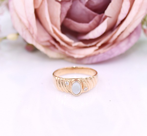 Złoty pierścionek p.585/4,15g z opalem i cyrkoniami ŁZ