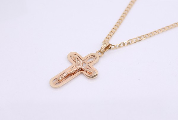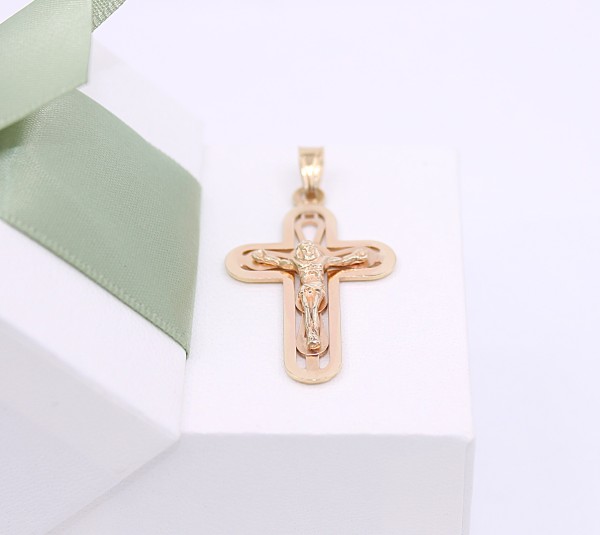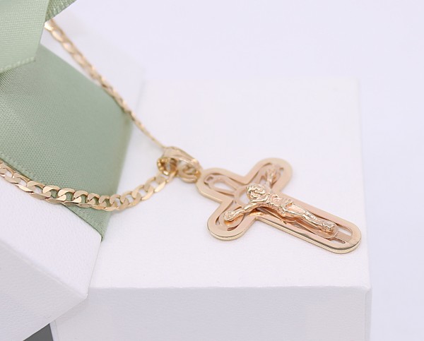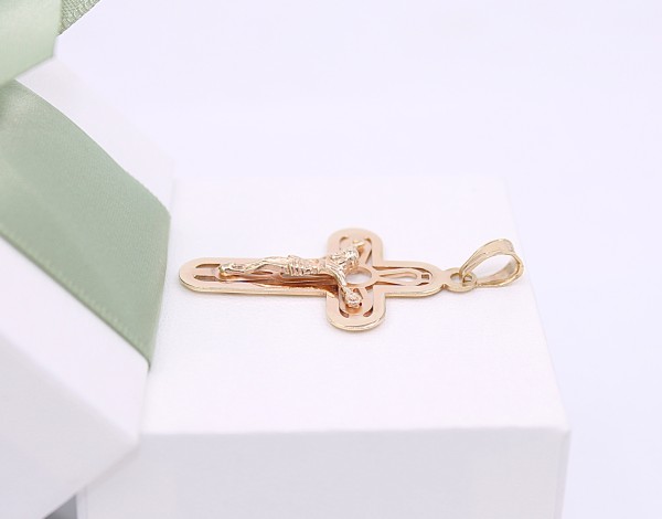 Przedmiotem sprzedaży jest zawieszka - Krzyż, wykonany z 14 -karatowego (p.585), lekko różowego złota.