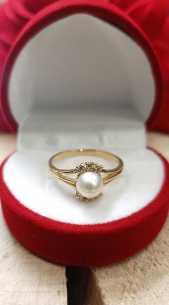 Przedmiotem sprzedaży jest pierścionek wykonany z 14-karatowego (p.585), żółtego złota.