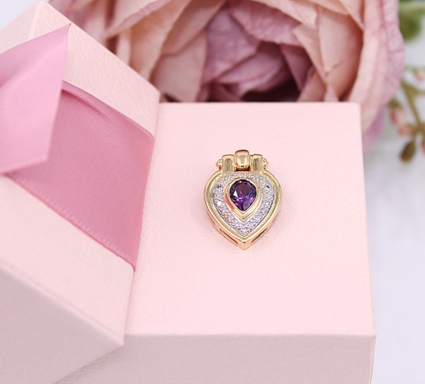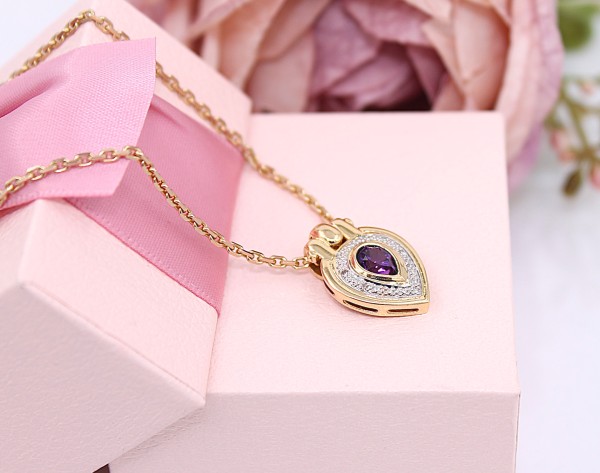 Przedmiotem sprzedaży jest zawieszka z fioletowym kamieniem, wykonana z 18-karatowego (p.750),żółtego złota.