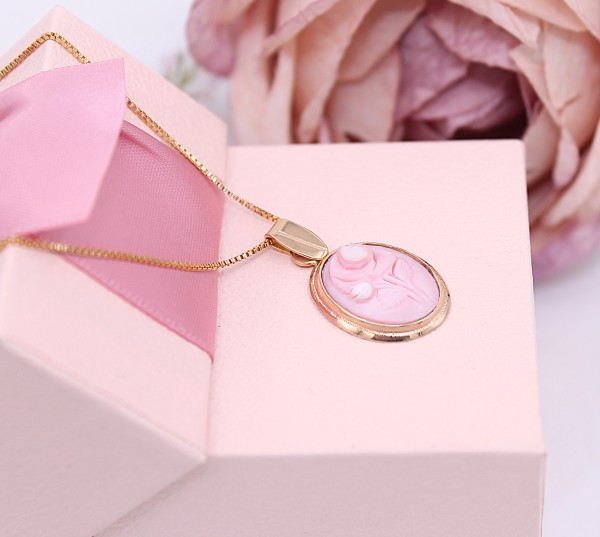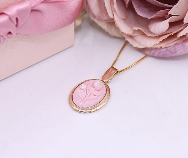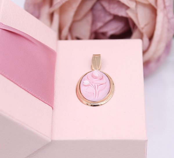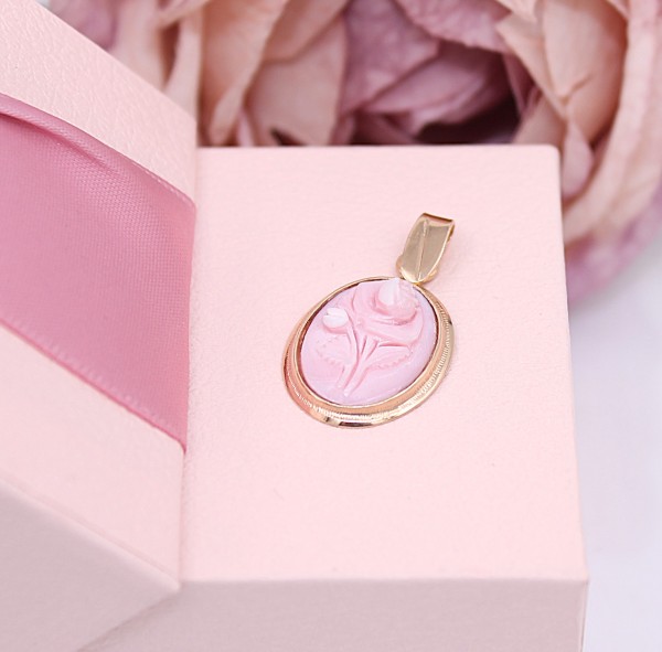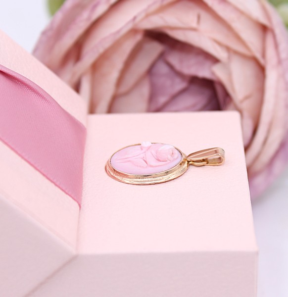 Przedmiotem sprzedaży jest zawieszka z różą, wykonana z 14-karatowego (p.585),lekko różowego złota.