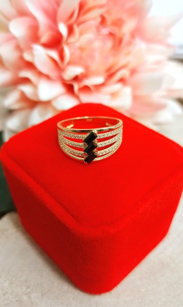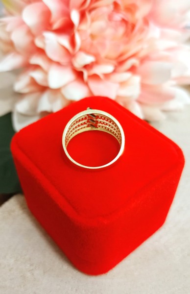Przedmiotem sprzedaży jest pierścionek wykonany z 14-karatowego (p.585), żółtego złota.