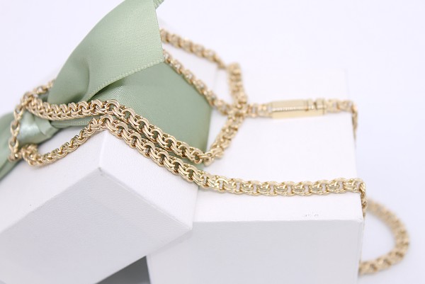 Przedmiotem sprzedaży jest łańcuszek, wykonany z 14-karatowego (p.585), żółtego złota - splot Garibaldi.