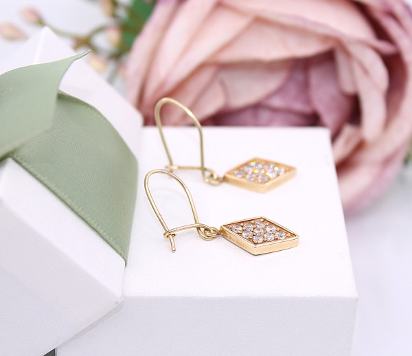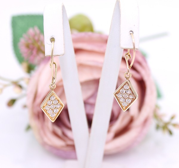 Przedmiotem sprzedaży są kolczyki z cyrkoniami, wykonane z 14-karatowego,(p.585) żółtego złota.