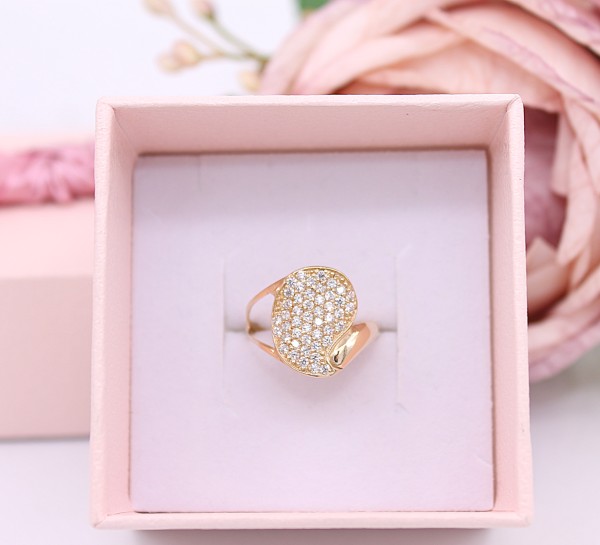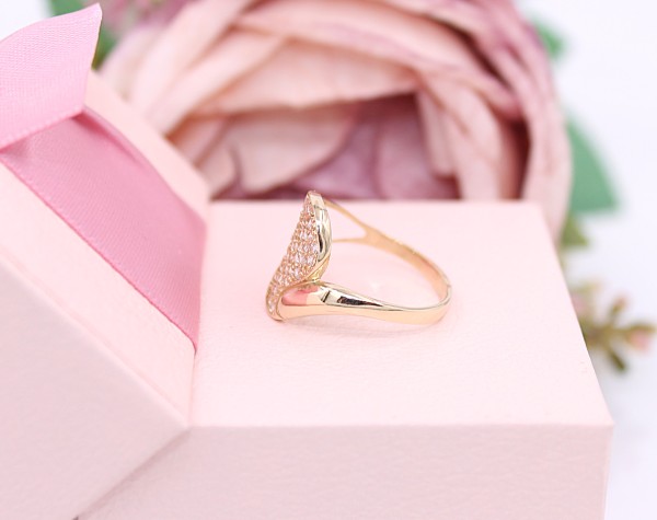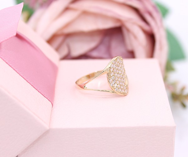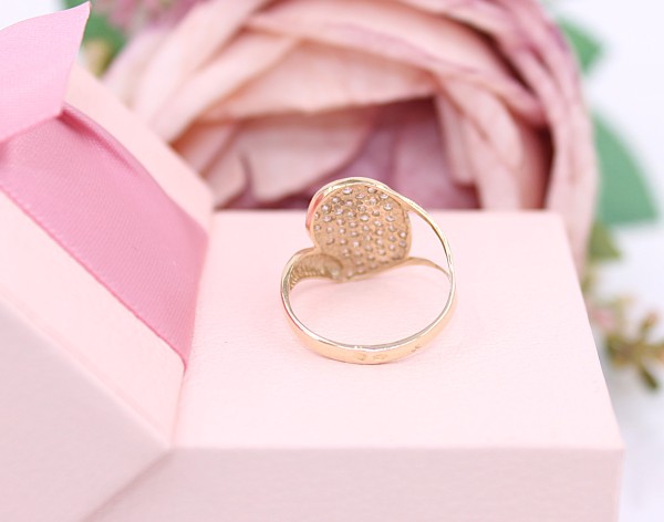 Przedmiotem sprzedaży jest pierścionek z cyrkoniami wykonany z 14-karatowego (p.585), żółtego złota.