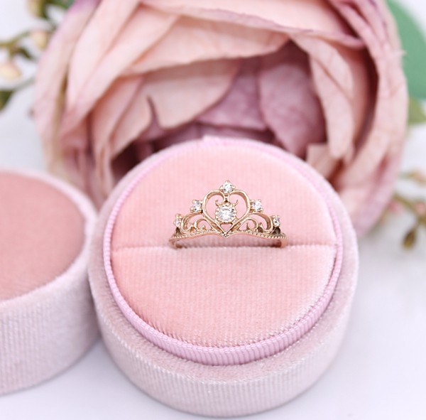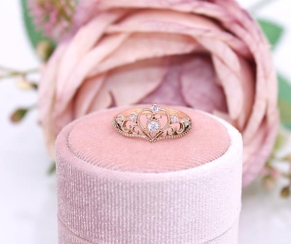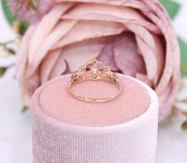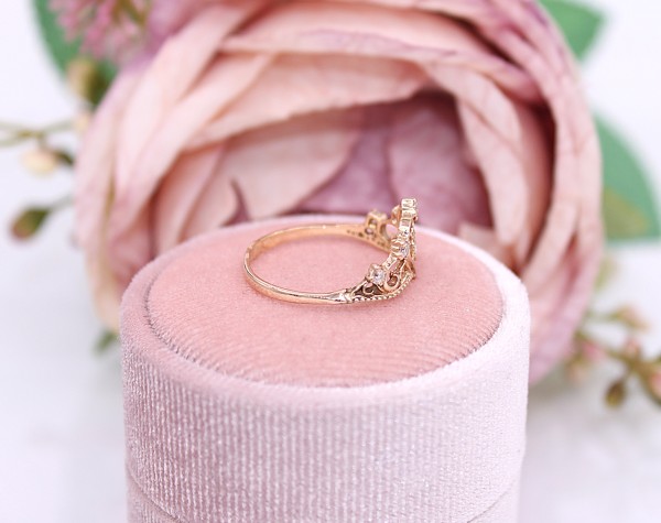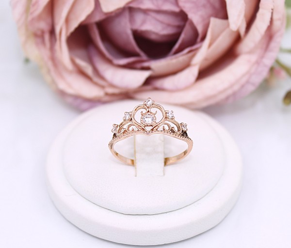 Przedmiotem sprzedaży jest pierścionek wykonany z 14-karatowego(p.585), różowego złota - korona z cyrkoniami.