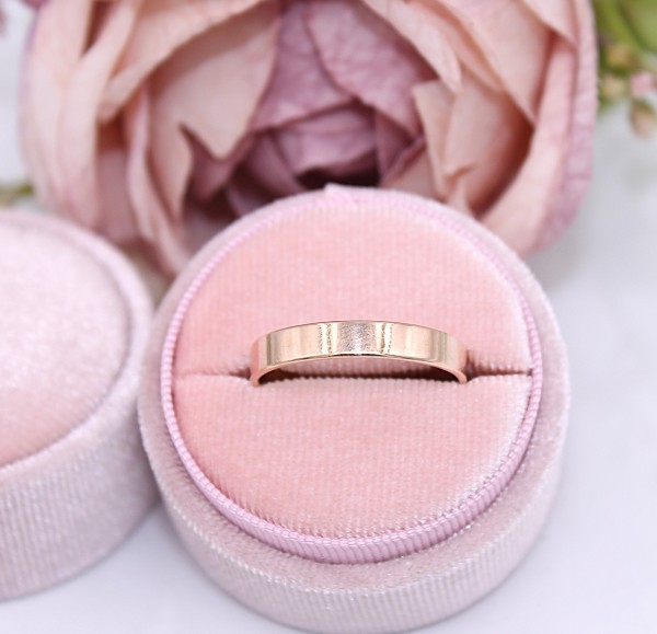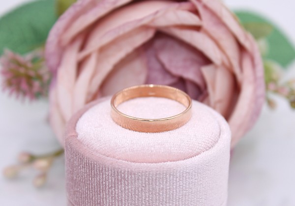 Przedmiotem sprzedaży jest obrączka, wykonana z 14-karatowego (p.585), różowego złota.