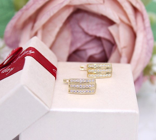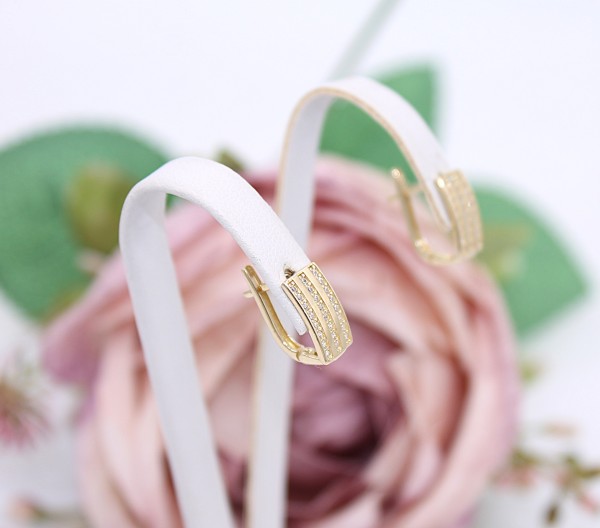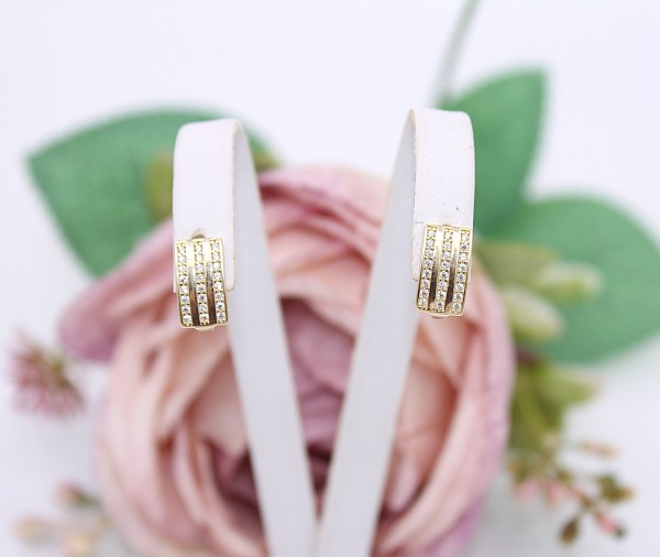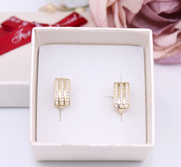 Przedmiotem sprzedaży są kolczyki wykonane z 14-karatowego(p.585), żółtego złota - front kolczyka zdobią małe białe cyrkonie.