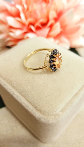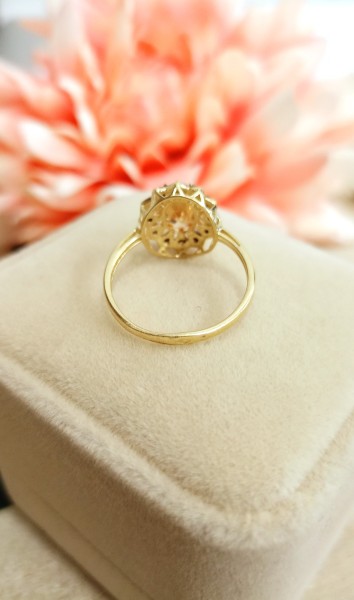 Przedmiotem sprzedaży jest pierścionek wykonany z 14-karatowego (p.585), żółtego złota.