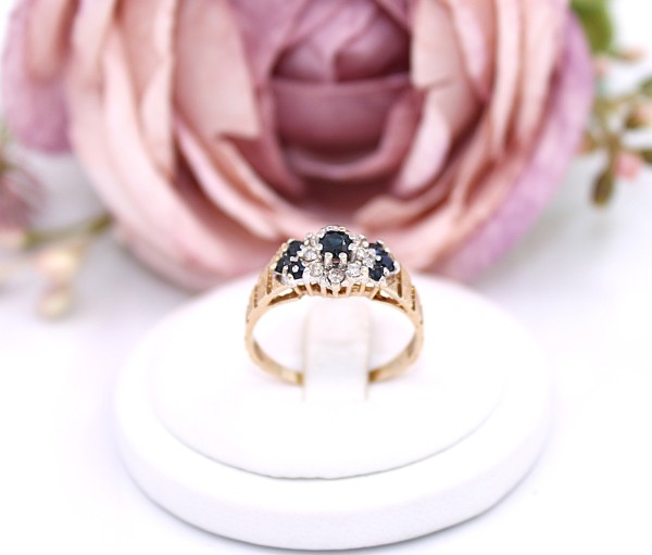 Złoty pierścionek p.375/2,41g z brylantami i szafirami ŁS