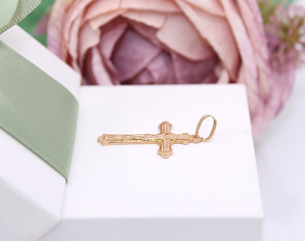 Przedmiotem sprzedaży jest zawieszka - Krzyż, wykonany z 14 -karatowego (p.585),różowego złota.