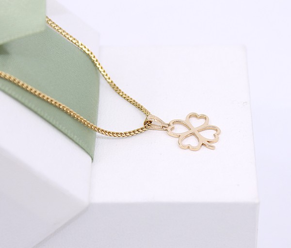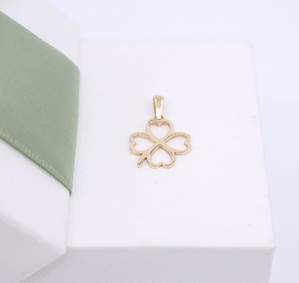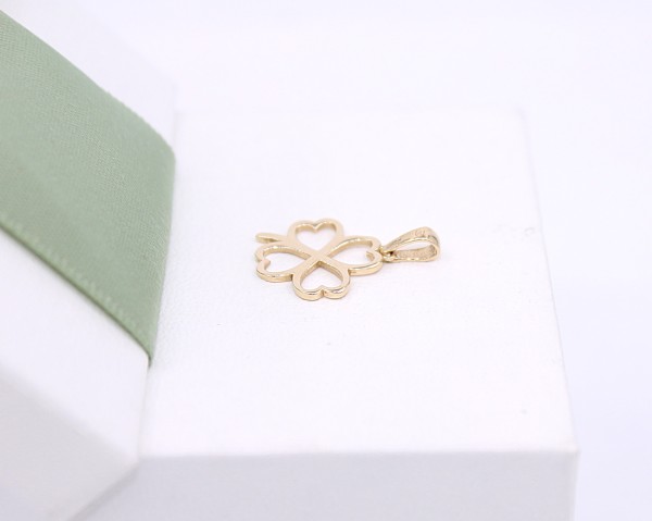 Przedmiotem sprzedaży jest zawieszka - koniczynka, wykonana z 14-karatowego (p.585), żółtego złota.