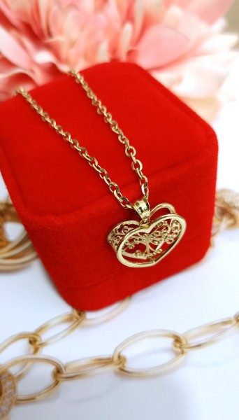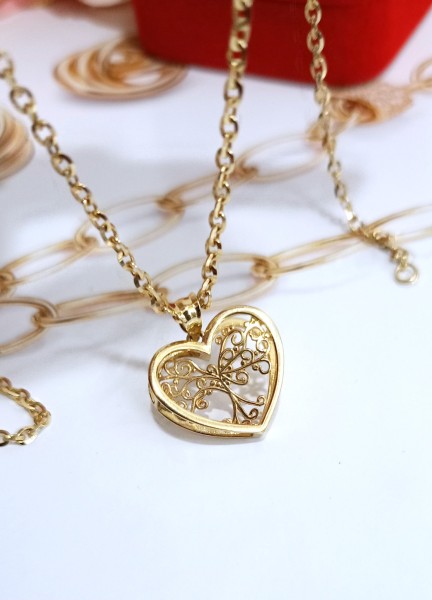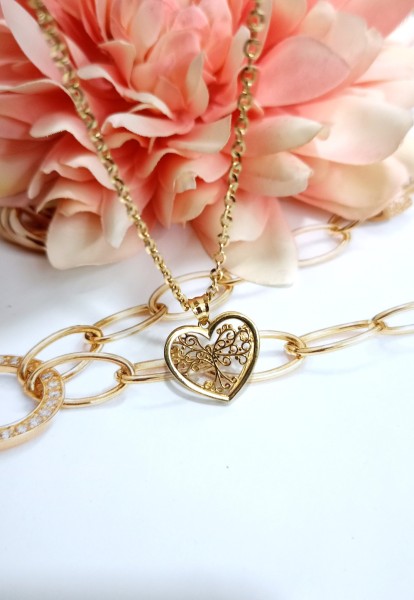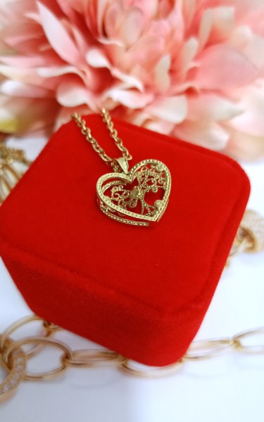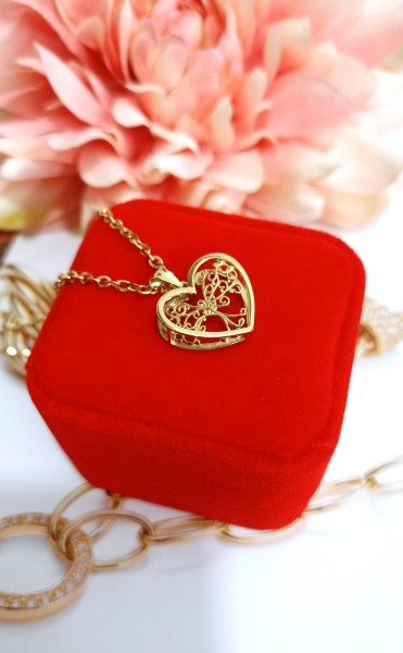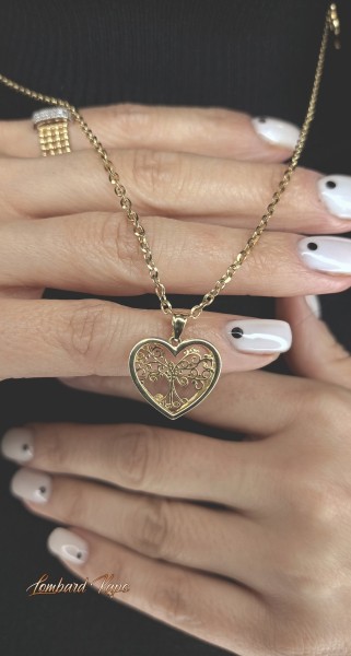 Przedmiotem sprzedaży jest zawieszka w kształcie serca 3D z wpisanym drzewkiem szczęścia, wykonana z 14-karatowego (p.585) żółtego złota.