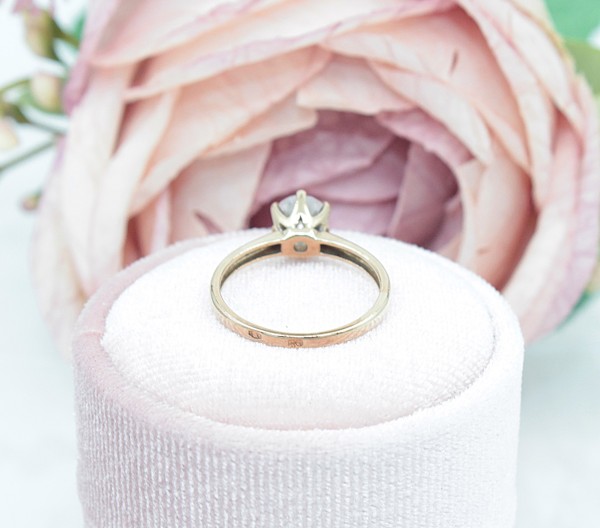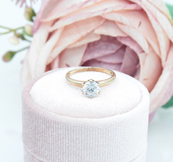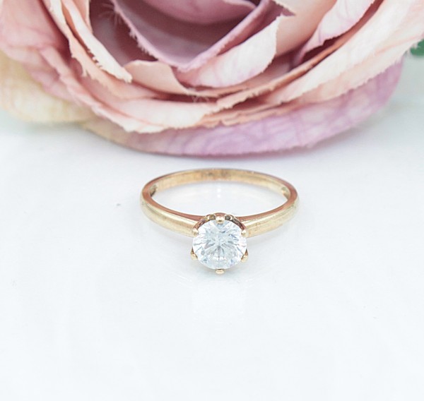 Przedmiotem sprzedaży jest pierścionek wykonany z 8-karatowego (p.333), żółtego złota, ozdobiony na froncie cyrkonią.