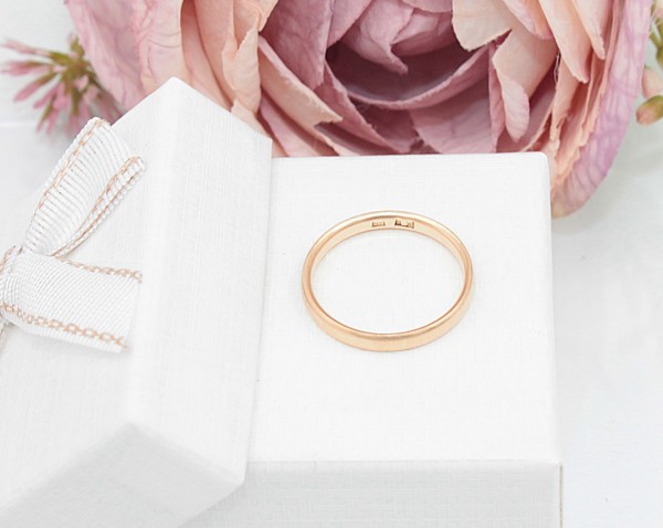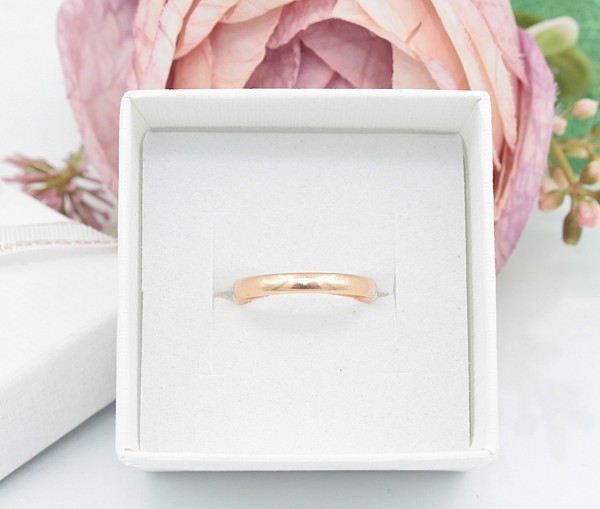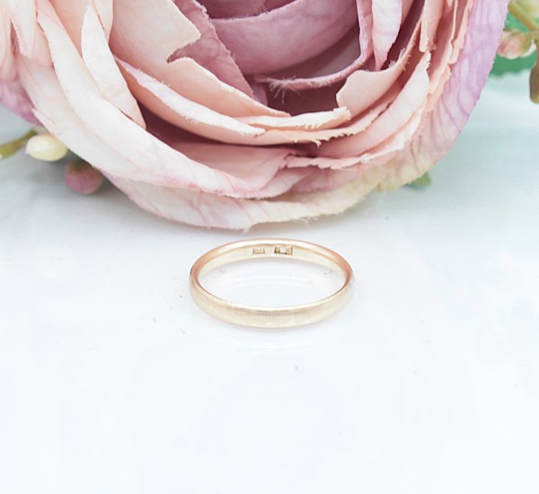 Przedmiotem sprzedaży jest obrączka, wykonana z 14-karatowego (p.585), różowego złota.