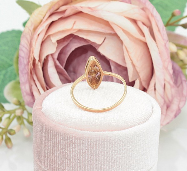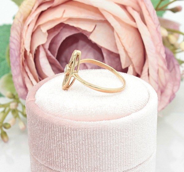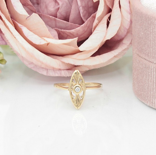 Przedmiotem sprzedaży jest pierścionek z drobnym brylancikiem, wykonany z 14-karatowego (p.585) żółtego złota.