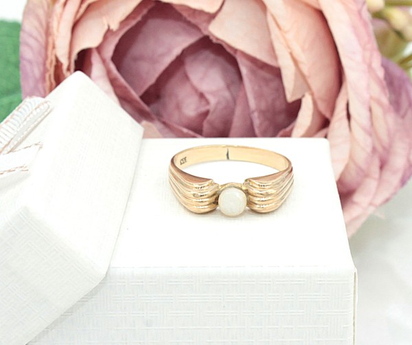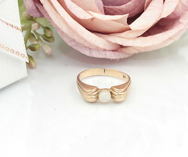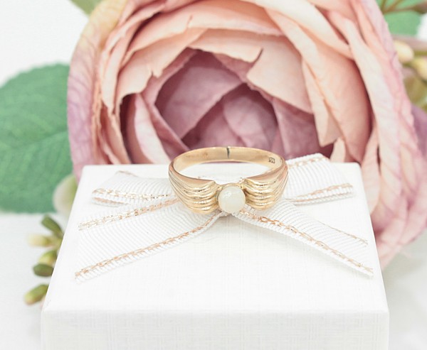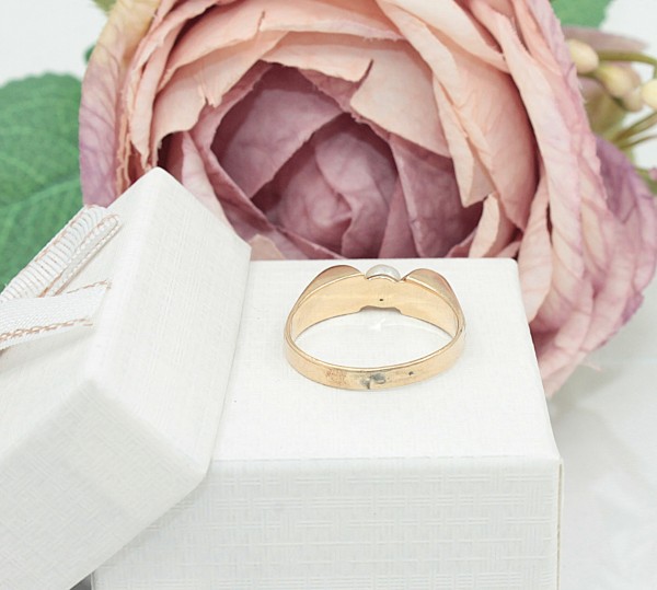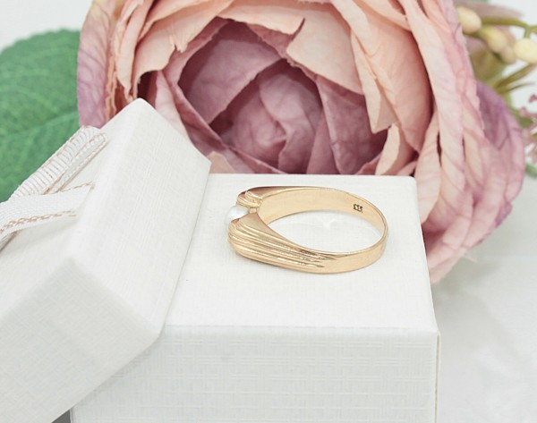 Przedmiotem sprzedaży jest pierścionek z perłą, wykonany z 8-karatowego (p.333) żółtego złota.
