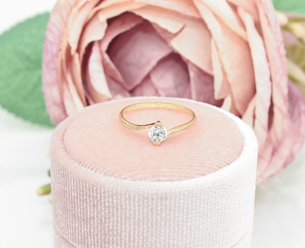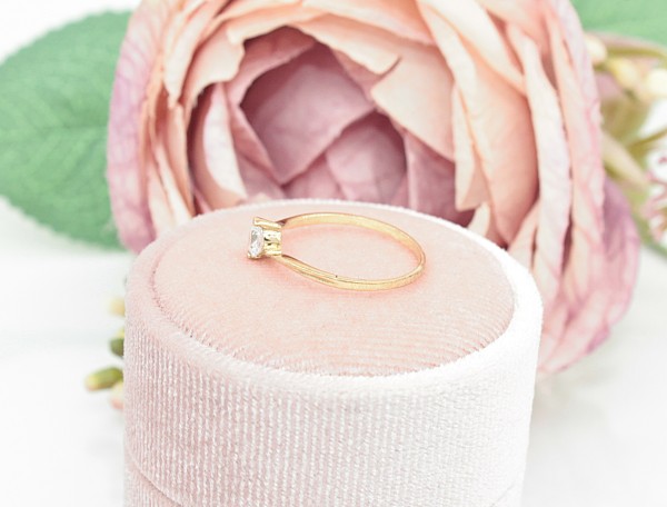 Przedmiotem sprzedaży jest pierścionek, wykonany z 8 -karatowego(p.333), żółtego z cyrkonią.