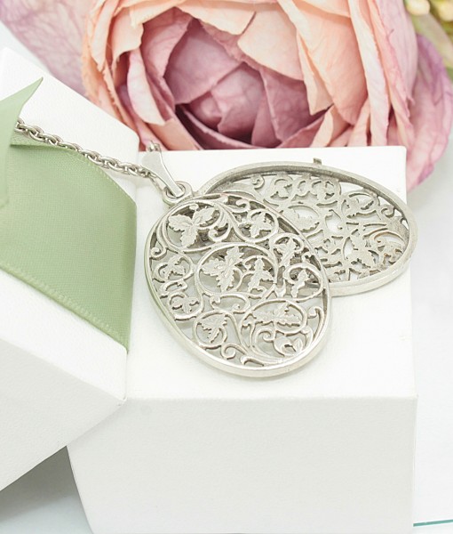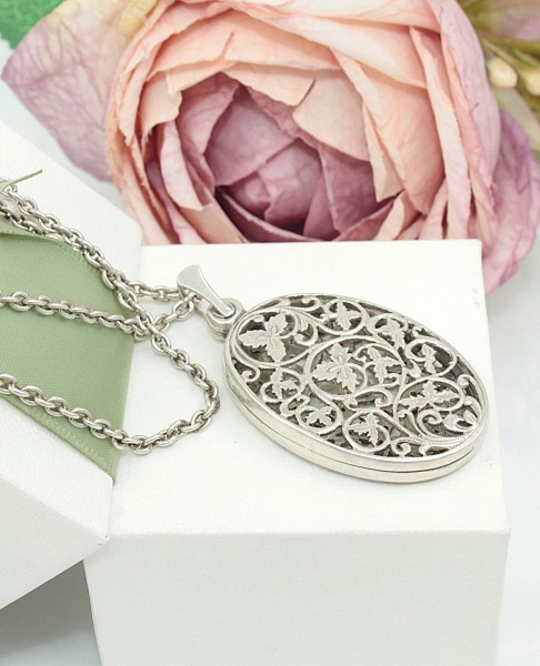 Przedmiotem sprzedaży jest srebrny łańcuszek z zawieszką sekretnikiem, wykonany ze srebra w pr.925 i pr.800.