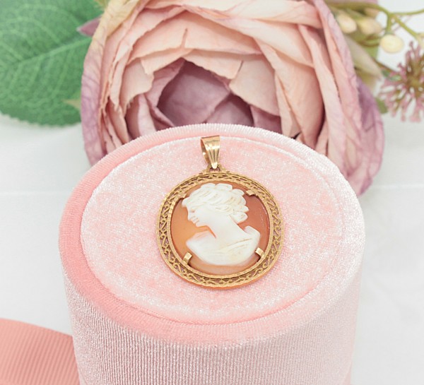 Przedmiotem sprzedaży jest zawieszka - Kamea, wykonana z 14-karatowego (p.585) żółtego złota.
