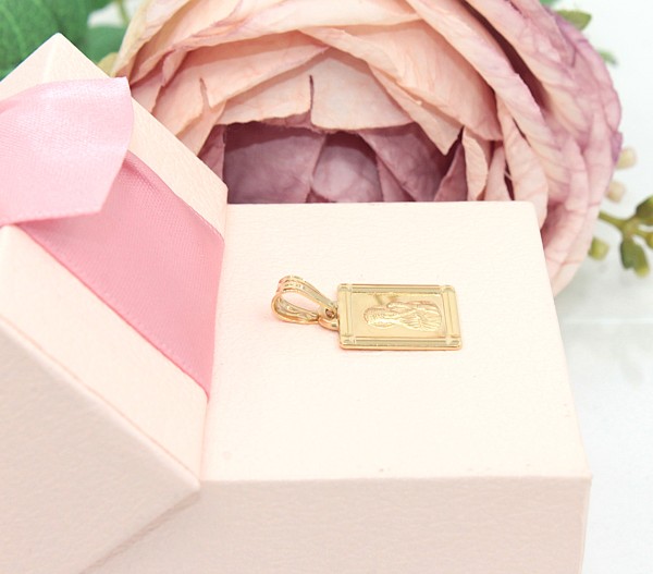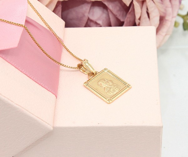 Przedmiotem sprzedaży jest zawieszka z wizerunkiem Matki Boskiej Częstochowskiej ,wykonana z 14-karatowego (p.585), żółtego złota.