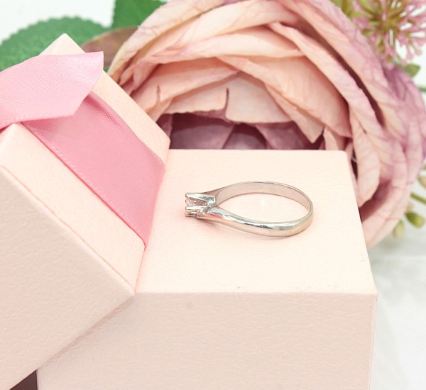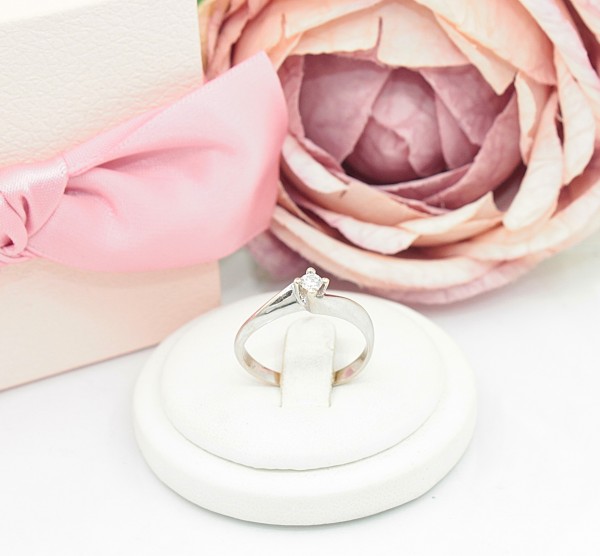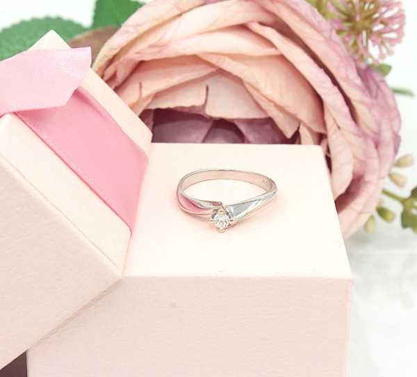 Przedmiotem sprzedaży jest pierścionek z brylancikiem, wykonany z 14-karatowego (p.583),białego złota.