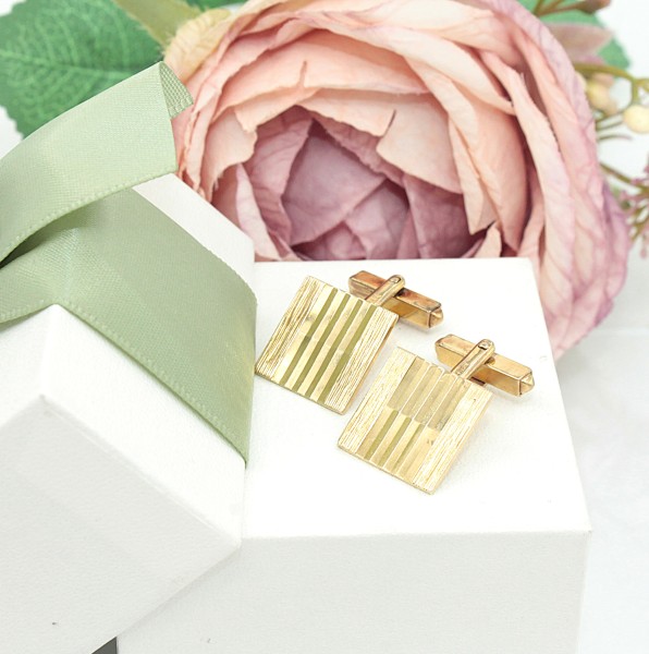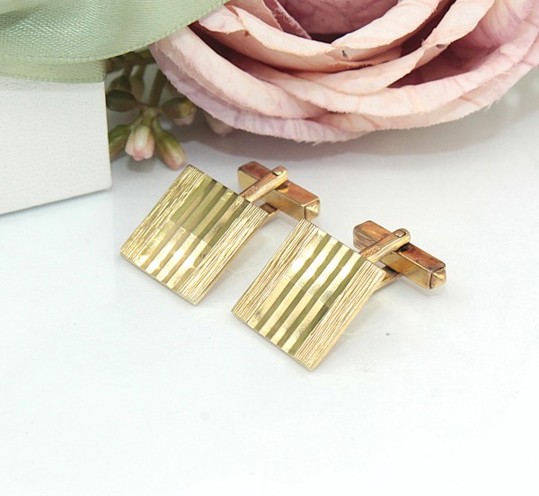 Przedmiotem sprzedaży jest komplet spinek do mankietów - grawrowane, wykonany z 8-karatowego (p.333), żółtego złota.