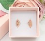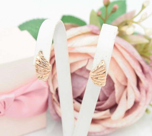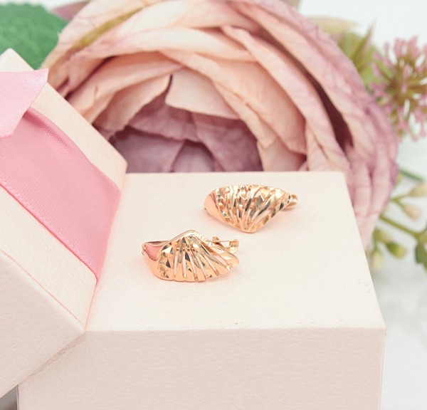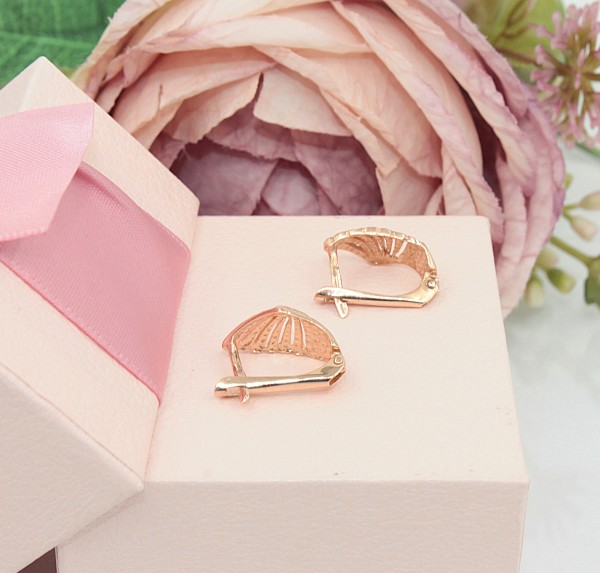 Przedmiotem sprzedaży są kolczyki wykonane z 14-karatowego(p.585), lekko różowego złota z grawerem na froncie.