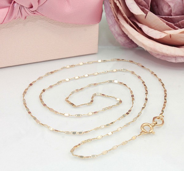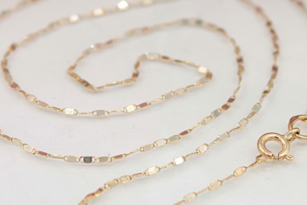 Przedmiotem sprzedaży jest łańcuszek, wykonany z 14-karatowego (p.585),żółtego złota - blaszki.