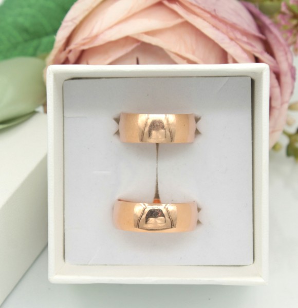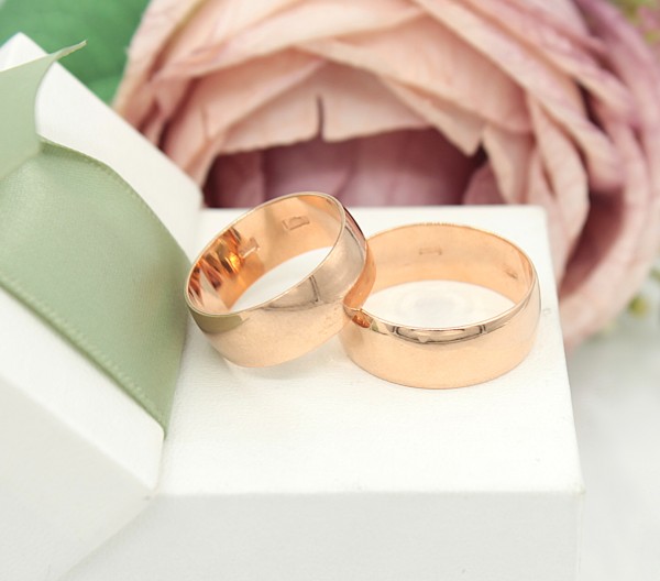 Przedmiotem sprzedaży jest komplet obrączek ślubnych, wykonany z 14-karatowego (p.583), lekko różowego złota.