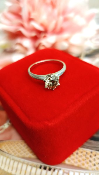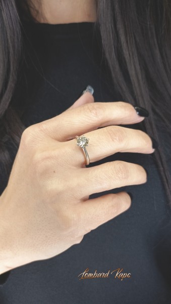 Przedmiotem sprzedaży jest pierścionek z brylantem wykonany z 14-karatowego(p.585) białego i żółtego złota.