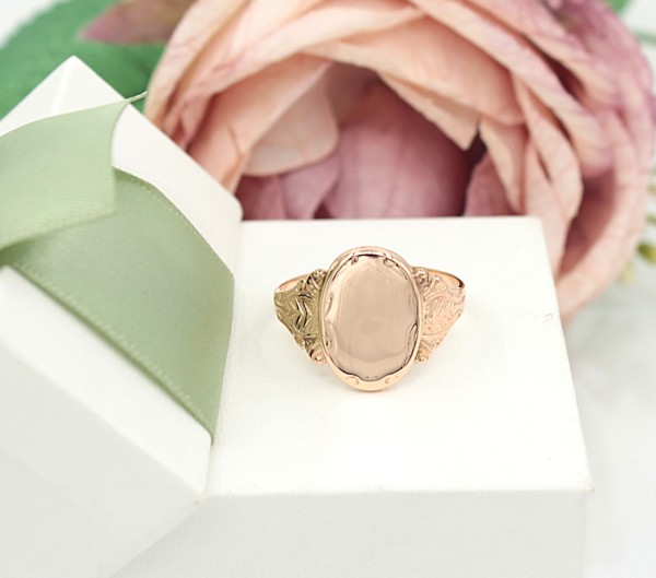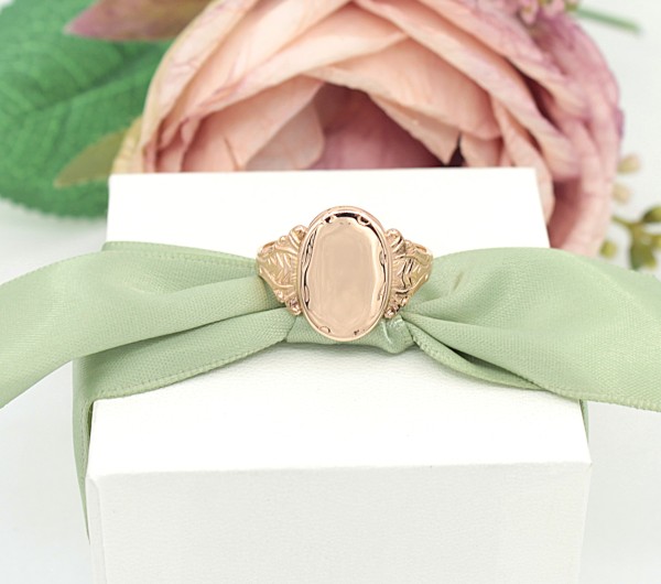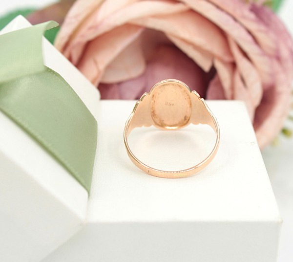 Przedmiotem sprzedaży jest sygnet/pierścionek wykonany z 14-karatowego(p.585),różowego złota.