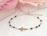 Złota bransoletka p.585/1,73g z Krzyżykiem i czarnymi kamieniami ŁZ